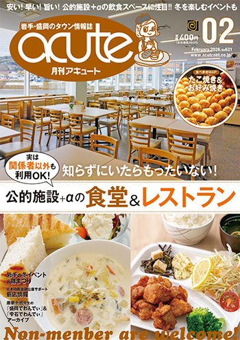 acute(アキュート)とは… 岩手県内+隣県から、街ネタ、エンターテイメント、グルメ情報など、毎日の暮らしを楽しく豊かにする情報を集めてお届けする総合タウン情報誌。